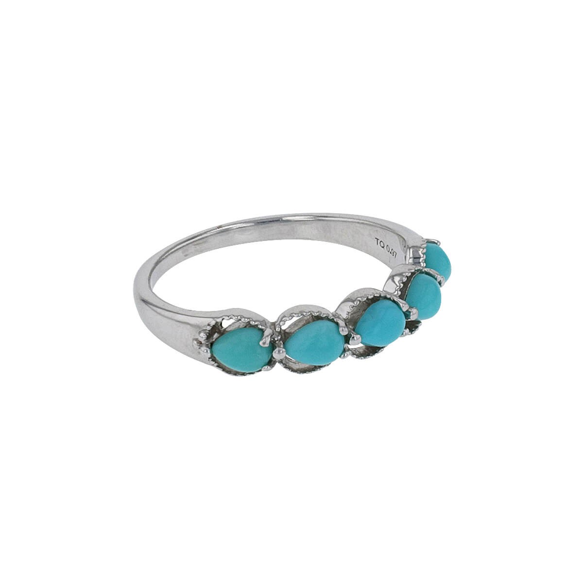 Bague en or blanc, ornée d’une suite de cinq turquoises en forme de gouttes. Signée.