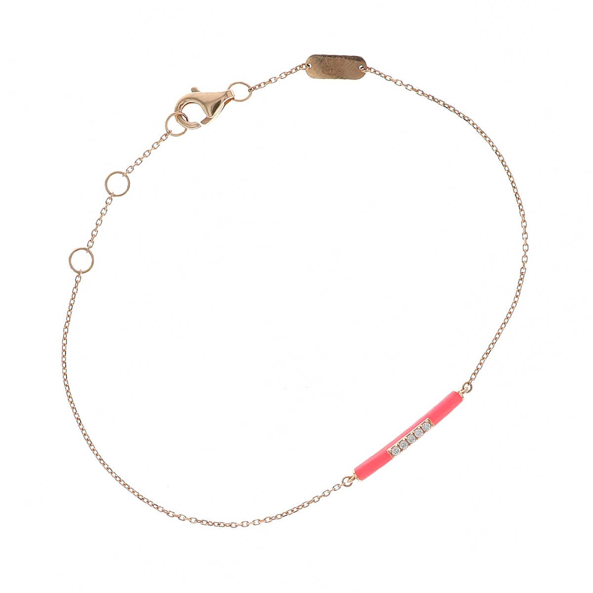 Bracelet en or rose, retenant un motif en émail rose serti d’une ligne de cinq diamants. Signé.