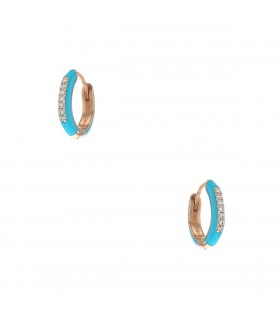Boucles d’oreilles créoles en or rose, émail turquoise et diamants