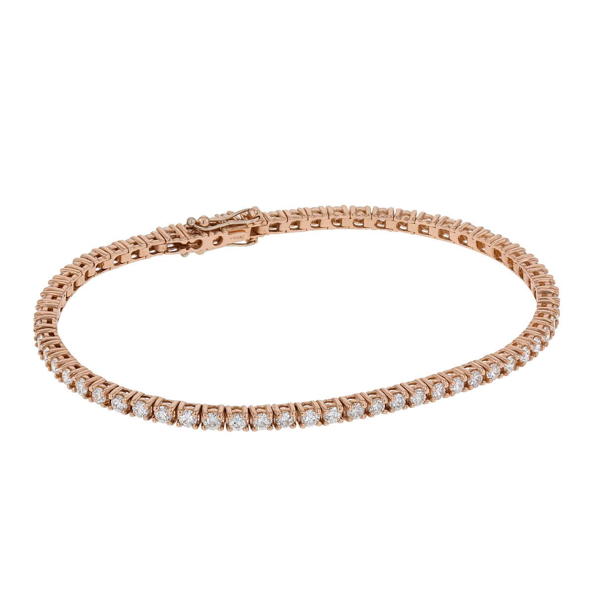 Bracelet en or rose, serti d’une rangée de 62 diamants pour un poids d’environ 2,81 carats, agrémenté d’un fermoir invisible à cliquet avec double huit de sécurité.