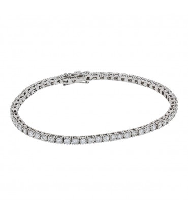 Bracelet en or blanc, serti d’une rangée de 61 diamants pour un poids d’environ 4,3 carats, agrémenté d’un fermoir invisible à cliquet avec double huit de sécurité.