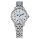 Montre bracelet de femme en acier, cadran argenté guilloché avec chiffres arabes peints, affichage de la date par guichet à 6 heures, lunette ronde sertie de diamants. Mouvement quartz. Bracelet acier avec boucle déployante en acier. Signée et numérotée.