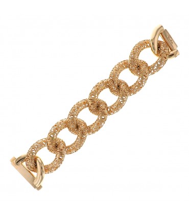 Bracelet en or jaune, orné de larges maillons ajourés suivant des motifs de feuillages. Signé et numéroté.