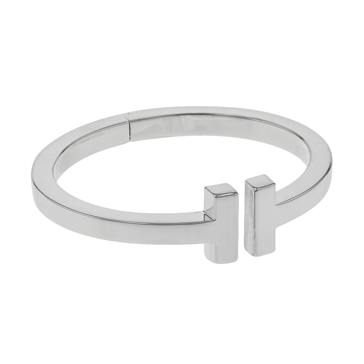 Bracelet jonc ouvert en argent, les embouts stylisant le “T” de Tiffany. Signé.