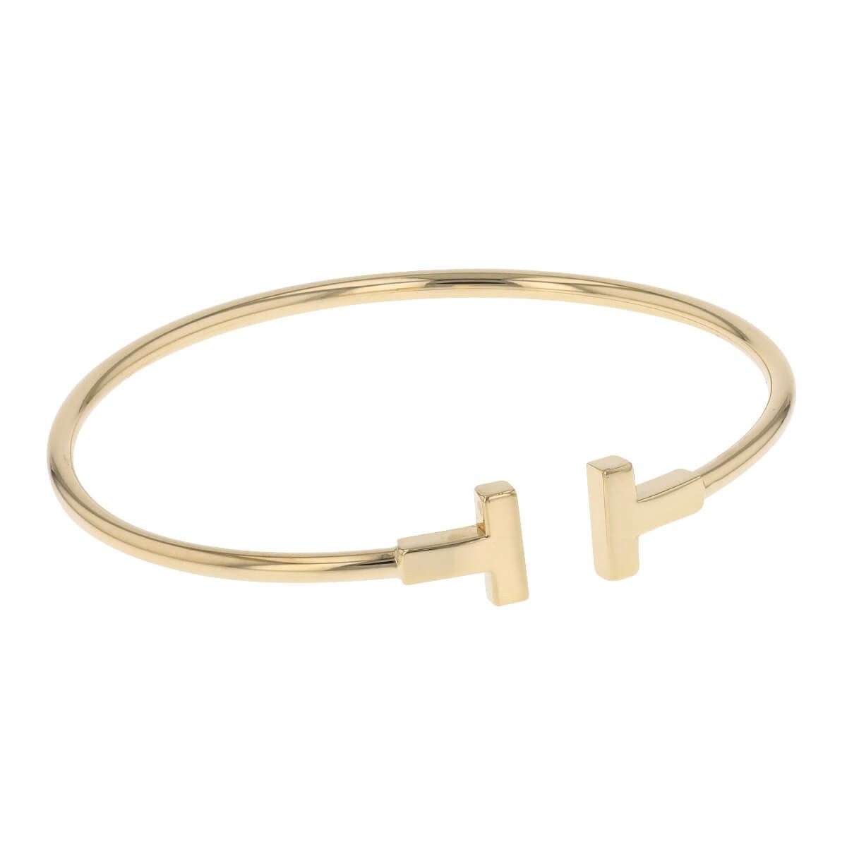 Bracelet jonc ouvert souple en or jaune, taille medium, les embouts stylisant le “T” de Tiffany. Signé.