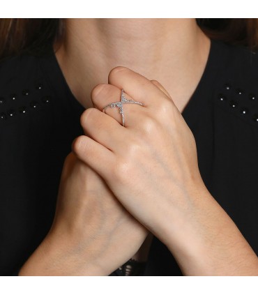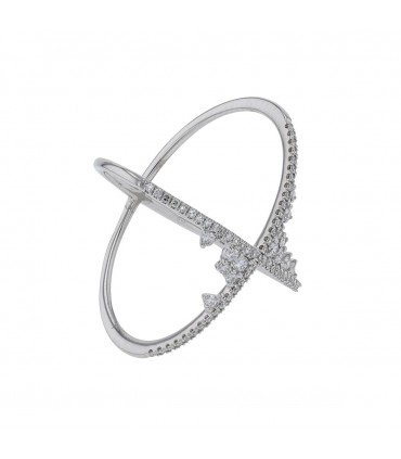 Bague en or blanc, ornée d’un motif croisé serti de diamants.