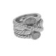 Bague en argent, ornée d’un motif de corde s’enroulant autour du doigt et se terminant par deux motifs sertis de diamants, l’un de forme ovale, le second en forme de goutte. Signée.