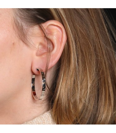 Boucles d'oreilles créoles en or blanc, à décor de vis. Signées et numérotées.
