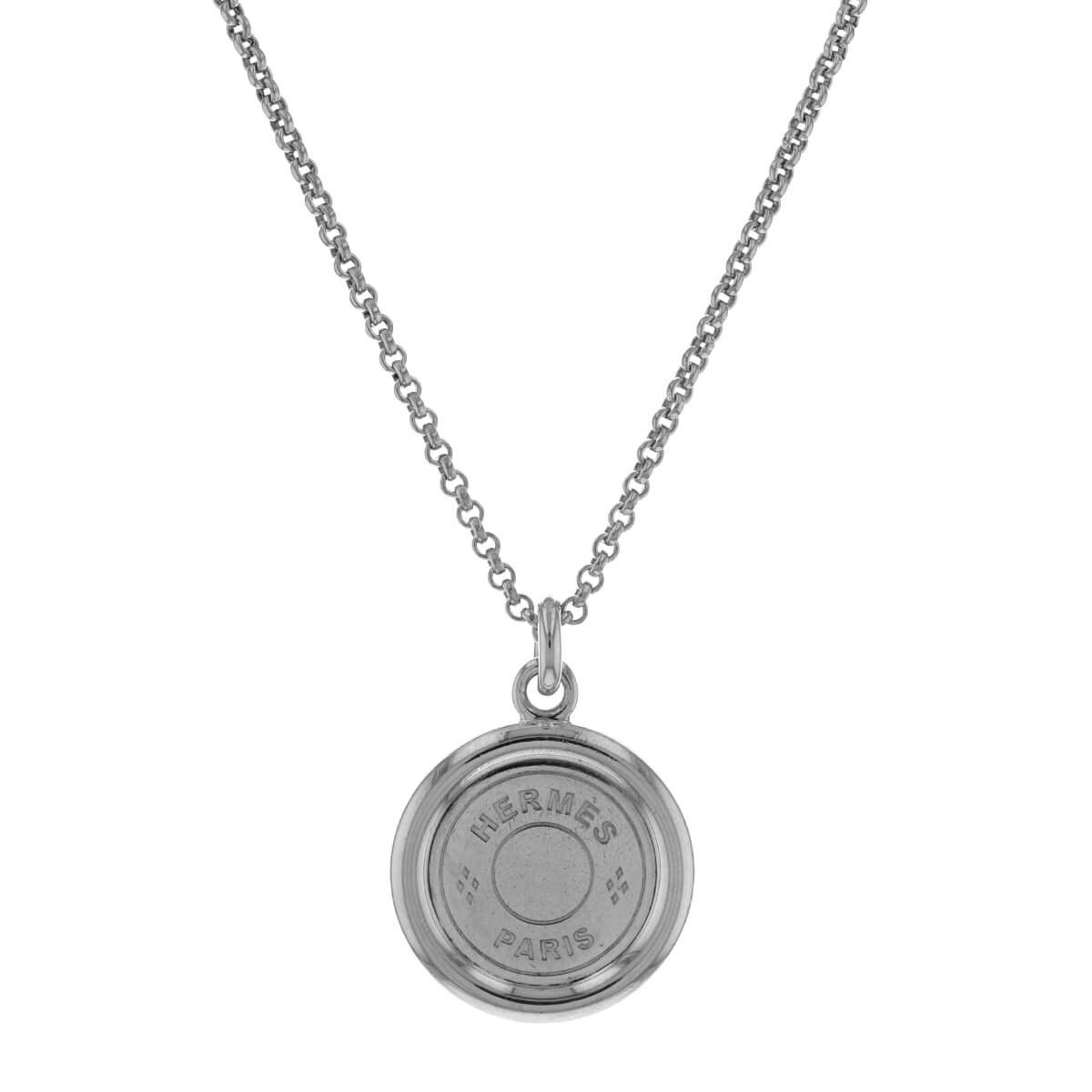Collier en argent, maille jaseron, retenant en pendentif une médaille signée Hermès Paris.