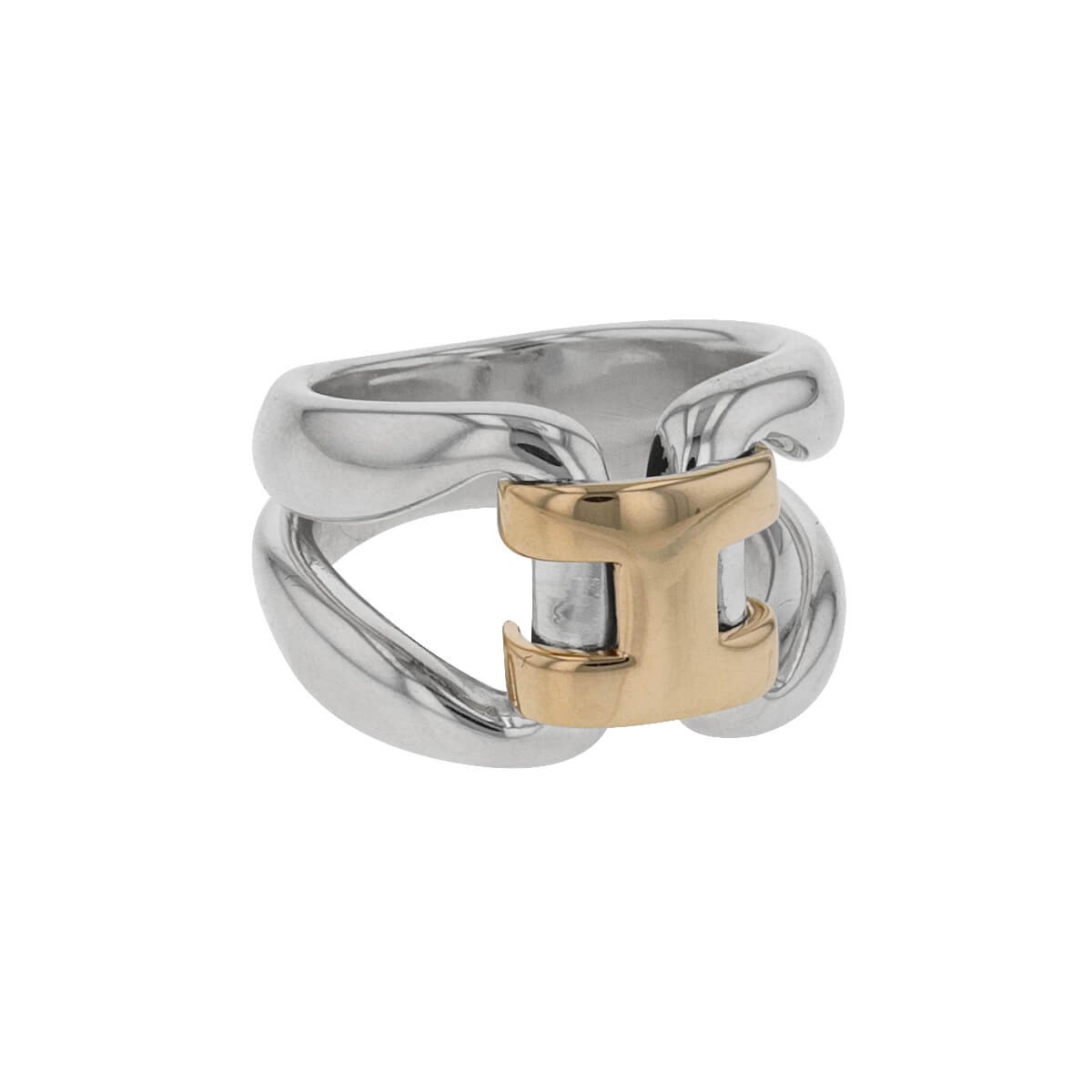 Bague en argent, centrée d’un motif “H” en or jaune. Signée.