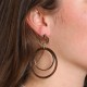 Boucles d’oreilles en métal doré, retenant en pendentifs deux anneaux en corne de buffle et en métal doré. Signées.