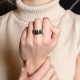 Bague en or blanc ajouré et caoutchouc noir, ponctuée de 2 lignes de diamants. Signée et numérotée.