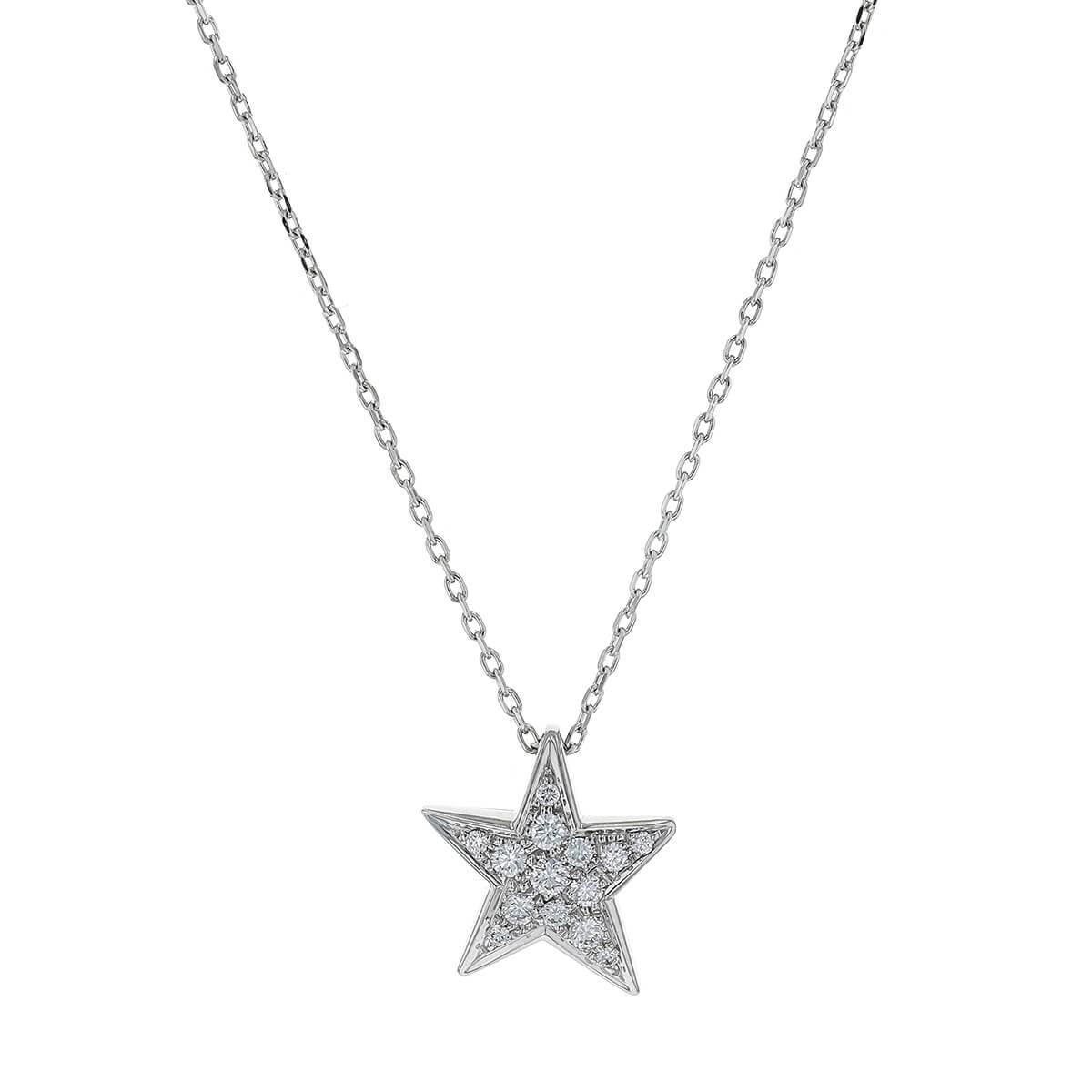 Collier moyen modèle en or blanc, maille forçat, retenant un motif étoilé serti de diamants. Signé et numéroté.