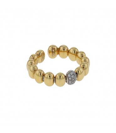Bague ouverte en or jaune, composée d’une suite de motifs ovales centré par un motif serti de diamants sur de l’or blanc.