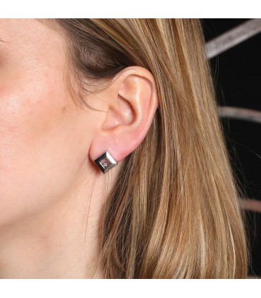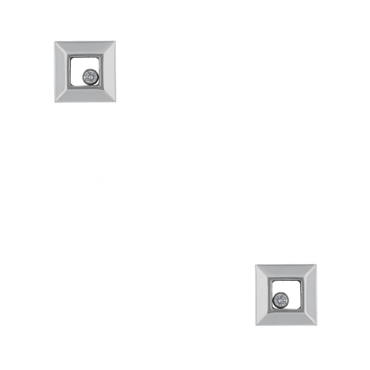 Boucles d’oreilles en or blanc, stylisant un motif carré retenant un diamant mobile. Signées et numérotées. Système d’attache papillon certainement rapporté.