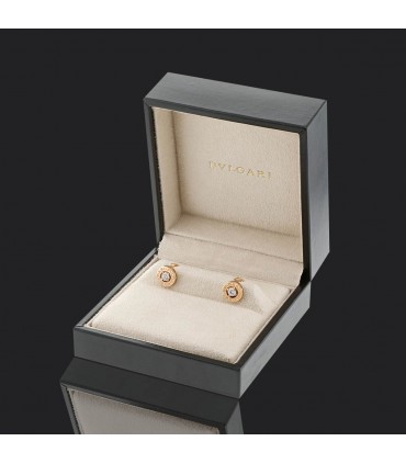 Boucles d’oreilles en or rose, gravées du double logo “Bvlgari” et centrées d’un diamant. Signées.