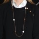 Collier sautoir en or rose, maille jaseron, ponctué de perles d’or, de perles de céramique blanche et de motifs en améthyste, agrémenté d’un fermoir à cliquet invisible. Signé et numéroté.