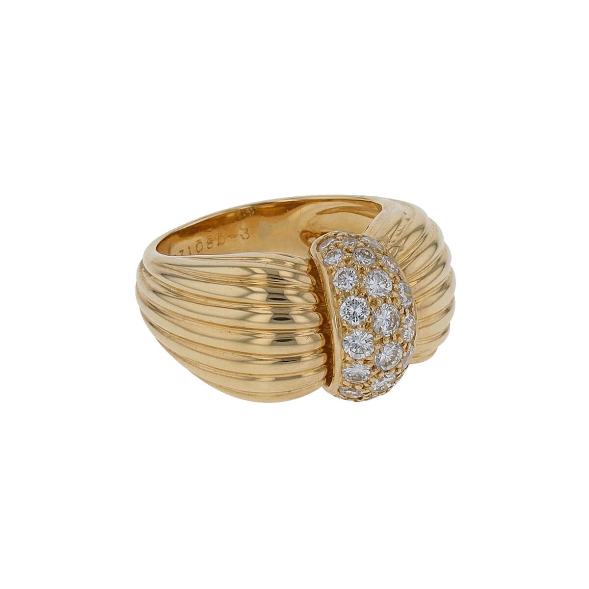Bague en or jaune, centrée de motifs de godrons retenant un pavage de diamants d’environ 0,5 ct. Signée et numérotée.