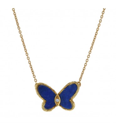 Collier en or jaune, centré d’un motif stylisant un papillon en lapis lazuli centré d’un diamant. Signé et numéroté.