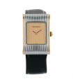 Montre bracelet de femme en céramique noire et acier, cadran noir avec chiffres arabes et index, affichage de la date par guichet à 4 heures 30, lunette tournante ornée de diamants. Mouvement quartz. Bracelet céramique noire, maillons articulés avec boucle déployante en acier. Signée et numérotée.
