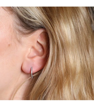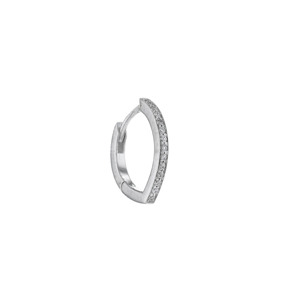 Mono boucle d’oreille en or blanc, formant une créole centrée d’une pointe partiellement sertie de diamants. Signée et numérotée.