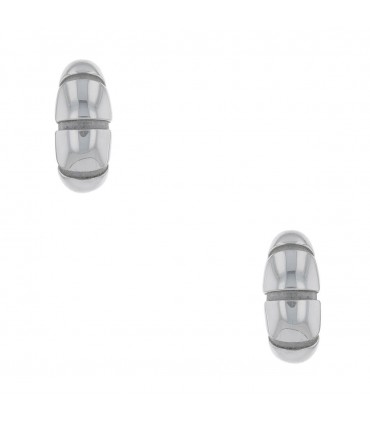 Boucles d’oreilles en or blanc, ponctuées de motifs godronnés et d’or blanc brossé. Signées et numérotées.