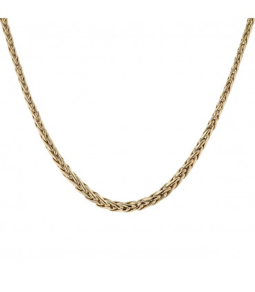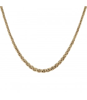 Collier en or jaune, maille palmier, agrémenté d’un fermoir mousqueton.
