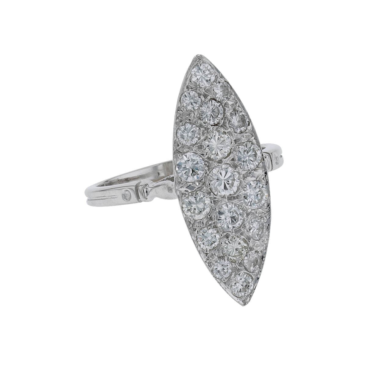 Bague en or blanc, monture marquise sertie de diamants pour un poids total d’environ 0,8 ct.