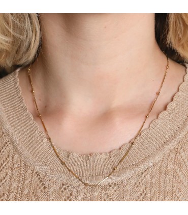 Chaîne en or jaune, maille forçat ponctuée de motifs de barres et de boules, agrémenté d’un fermoir anneau ressort.