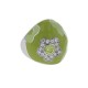 Bague en argent, composée d’un dôme en émail vert ponctué de 4 motifs de fleurs, l’une sertie de pierres blanches et d’une pierre verte.