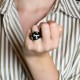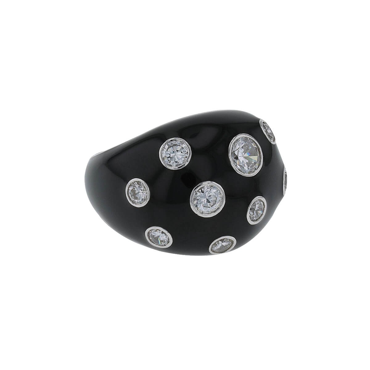 Bague en argent, composée d’un dôme en émail noir ponctué de 9 pierres blanches en serti clos.