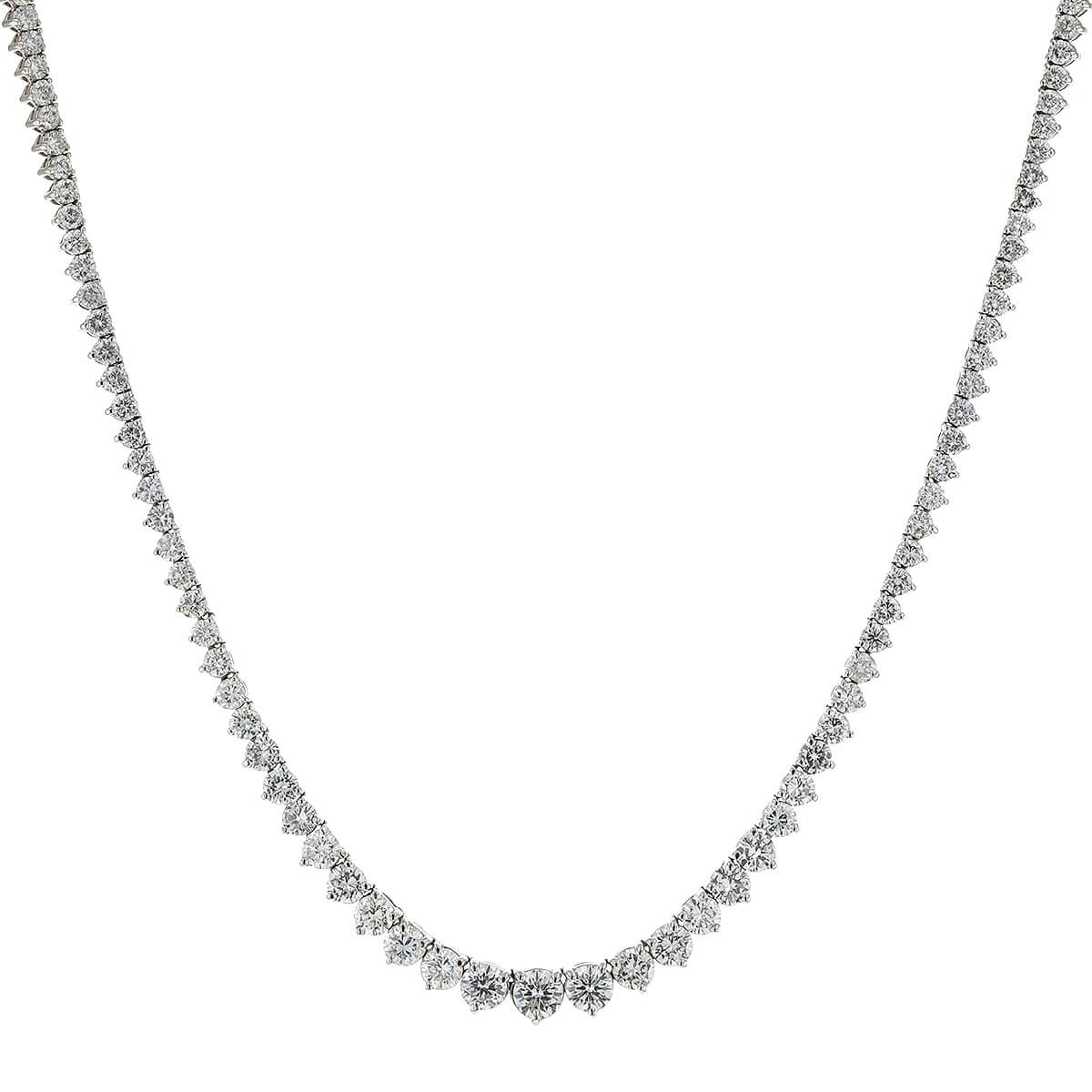 Collier en or blanc, serti d’une rangée de 139 diamants en chute pour un poids d’environ 12 carats, agrémenté d’un fermoir à cliquet avec huit de sécurité.