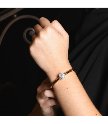 Bracelet jonc ouvrant en or rose, centré d’un motif coussin serti de diamants sur de l’or blanc. Signé et numéroté.