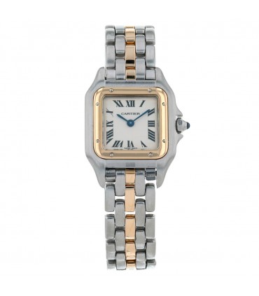 Montre bracelet petit modèle en or jaune et acier, cadran crème avec chiffres romains peints. Mouvement quartz. Bracelet 1 rang d’or jaune et acier, maillons articulés avec boucle déployante en acier. Signée et numérotée.