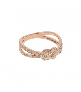 Bague en or jaune et platine, composé de 2 anneaux pavés de diamants intercalés de motifs torsadés. Signée.