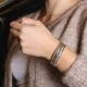 Bracelet ouvert en argent, retenant 5 joncs dont deux en motif cordage, un ponctué de diamants, un serti d’une ligne de diamants et un lisse. Signé.