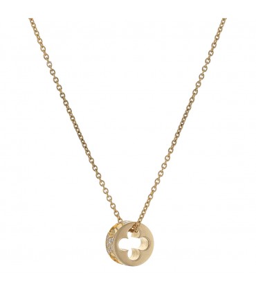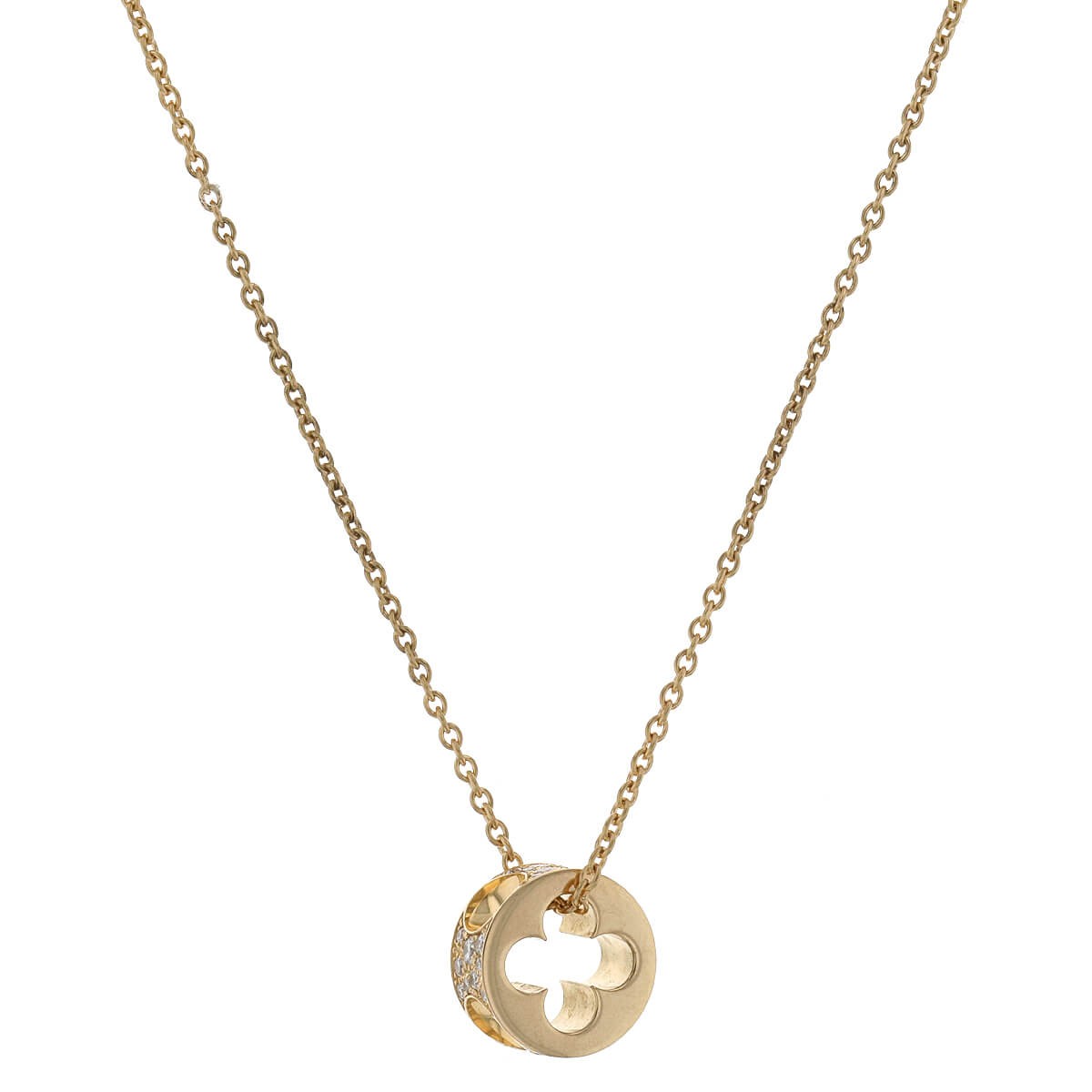 Chaîne en or jaune, maille forçat, centrée d’un motif géométrique ajouré stylisant la fleur Monogram Louis Vuitton serti de diamants. Signé et numéroté.