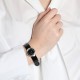 Montre bracelet de femme en acier, cadran noir avec index diamants, lunette et couronne ornées de diamants. Mouvement quartz. Bracelet neuf en cuir verni noir avec boucle ardillon en acier ornée de diamants. Signée et numérotée.