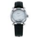 Montre bracelet de femme en acier, cadran en nacre avec chiffres romains et index appliqués retenant 7 diamants mobiles, affichage de la date par guichet à 4 heures. Mouvement quartz. Bracelet en crocodile bleu avec boucle ardillon en acier. Signée et numérotée.