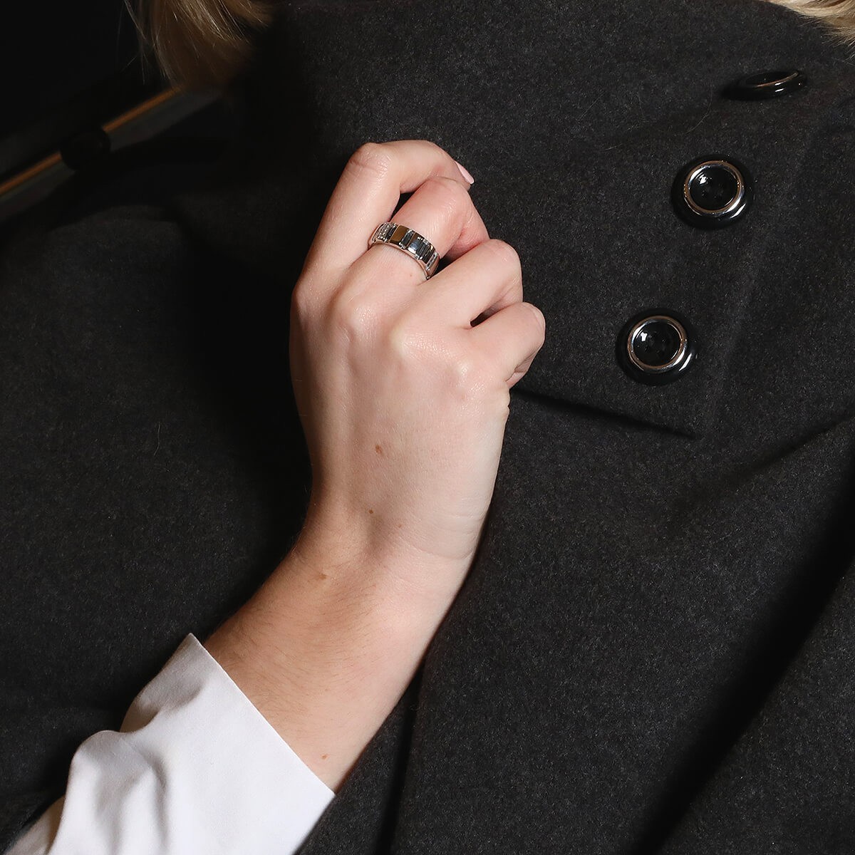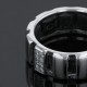 Bague en or blanc ajouré et caoutchouc noir, ponctuée de 2 lignes de diamants. Signée et numérotée.