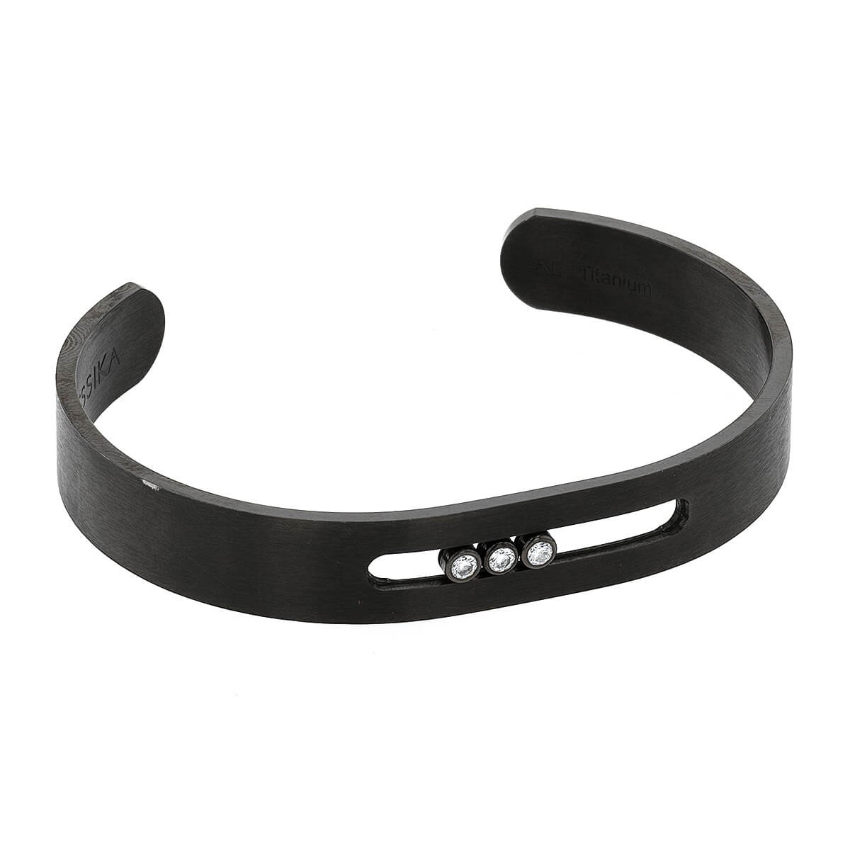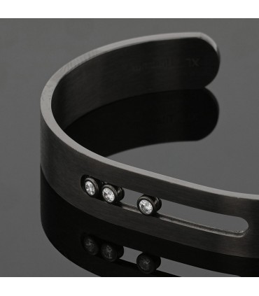 Bracelet en titane, à décor ajouré orné de trois diamants mobiles. Signé et numéroté. Micro rayures d’usage.