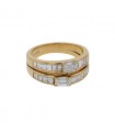Bague en or rose, petit modèle, à décor géométrique ajouré ponctué de 3 diamants. Signée.