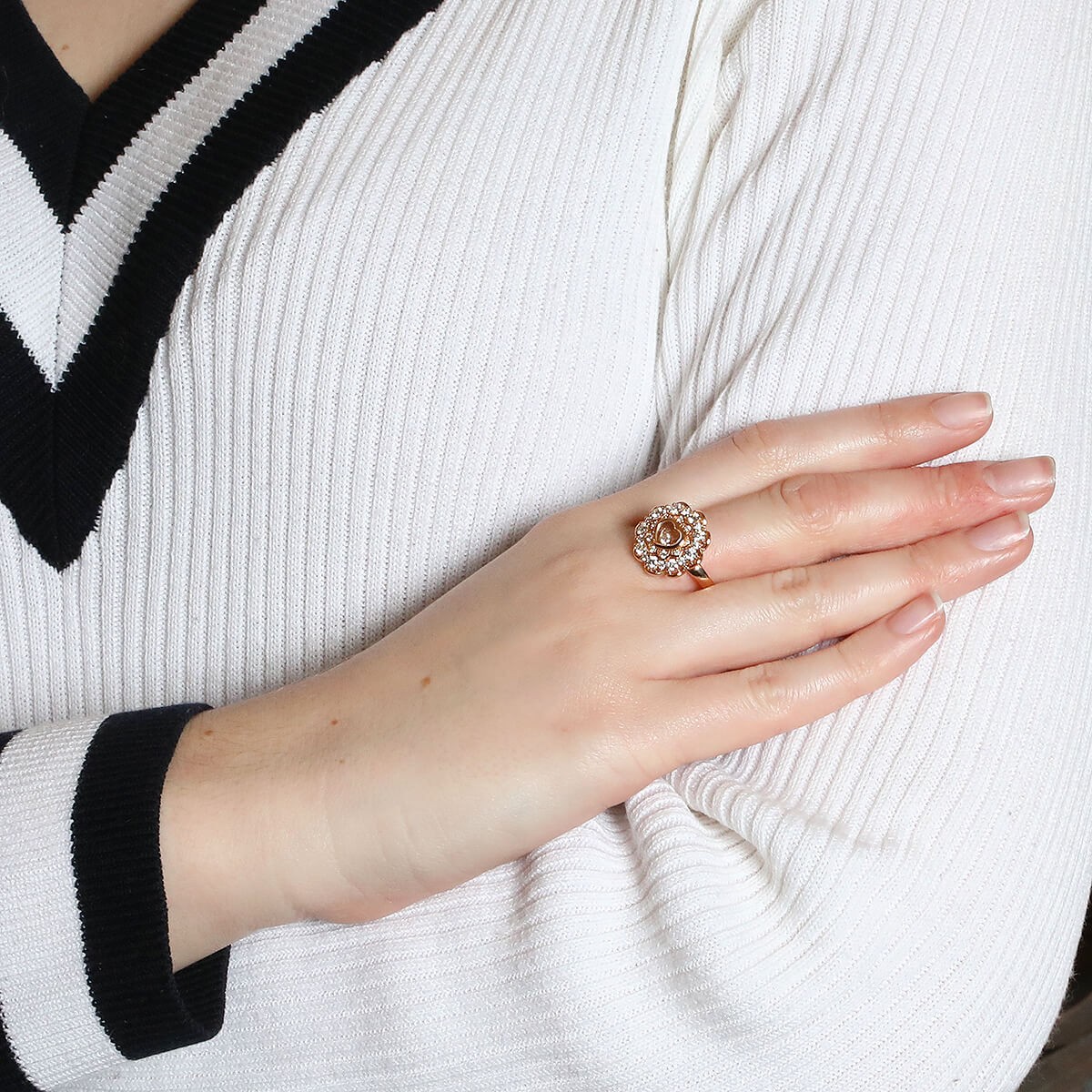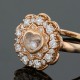 Bague en or rose, centrée d’un motif de coeur retenant un diamant mobile, entouré de diamants taille rond facetté suivant un motif de fleur. Signée et numérotée.