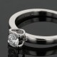 Bague en platine, centrée d’un diamant taille rond facetté de 0,31 ct couleur F pureté VVS1 serti dans deux motifs de coeurs ajourés. Signée et numérotée. Accompagnée d’un certificat GIA numérique.