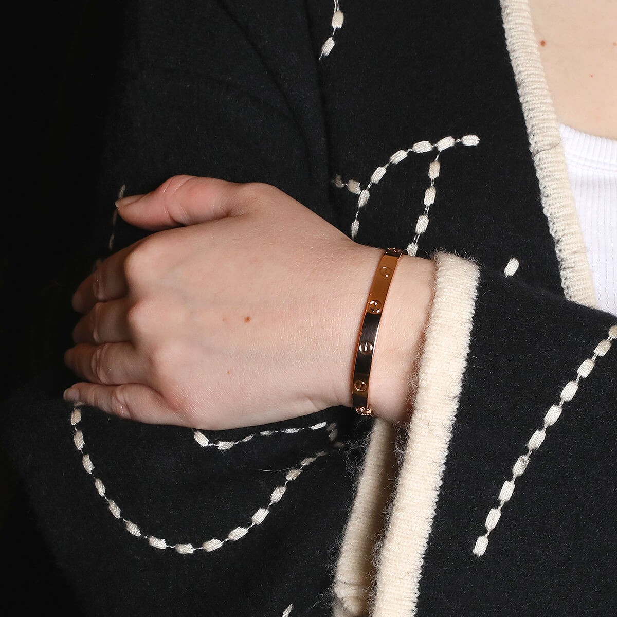 Bracelet rigide en or rose, à décor de vis. Signé et numéroté. Accompagné de son tournevis.