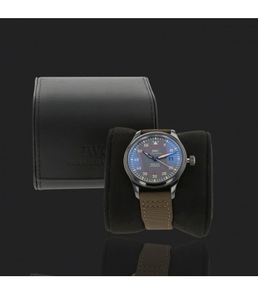 Montre bracelet en céramique noire, cadran vert kaki avec chiffres arabes rouges pour les heures et chiffres arabes beige et index luminescents pour les minutes, affichage de la date par guichet à 3 heures. Mouvement automatique. Bracelet en caoutchouc vert kaki doublé veau avec boucle ardillon en acier. Signée et numérotée.