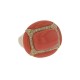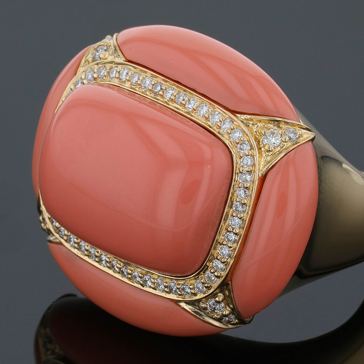 Bague en or jaune, centrée d’un important motif en corail reconstitué rehaussé d’une monture en or jaune sertie de diamants.