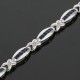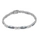 Bracelet en or blanc, composée d’une suite de motifs oblongs sertis de saphirs ronds facettés, ponctués de motifs de diamants sertis de diamants, agrémenté d’un fermoir à cliquet avec double huit de sécurité.