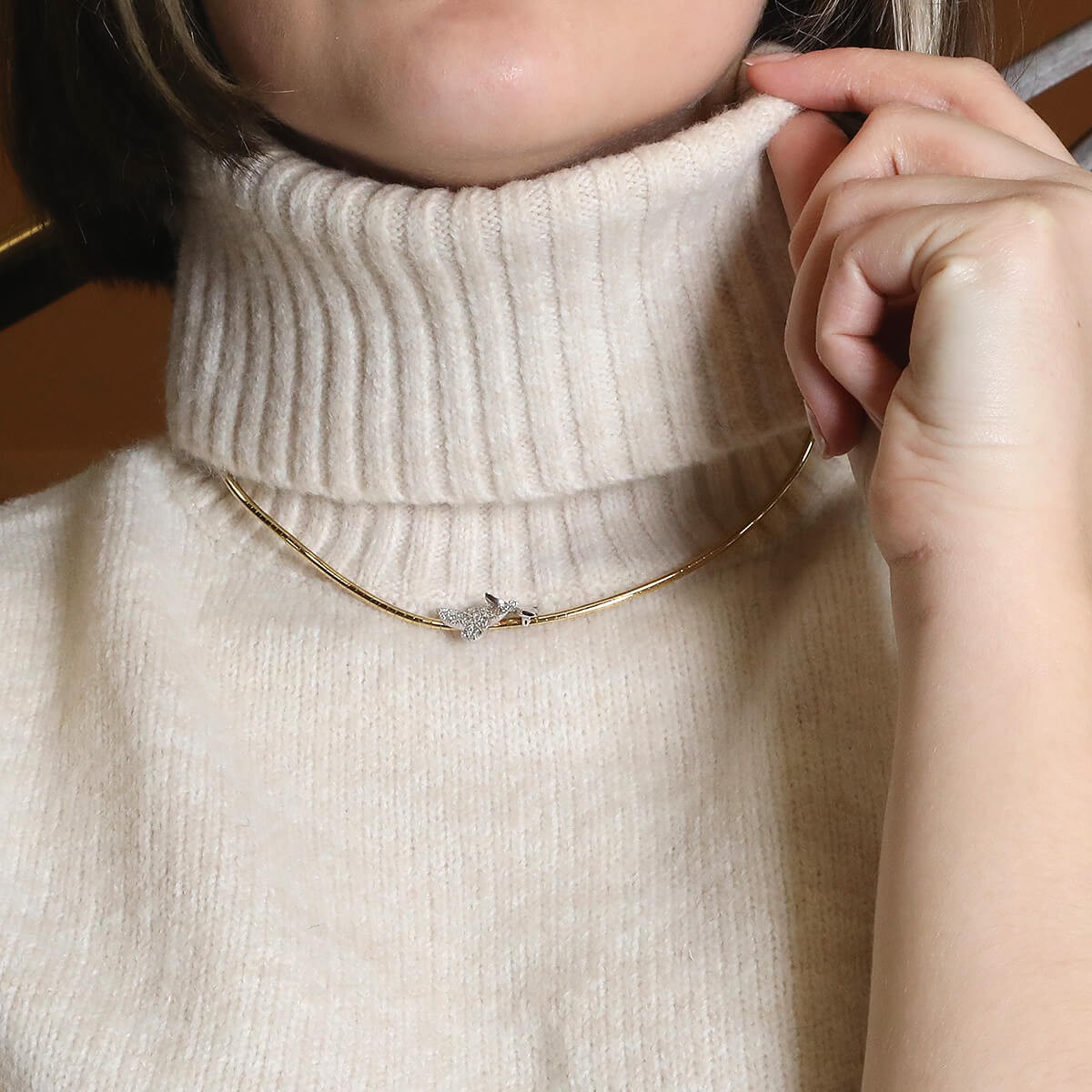 Collier en or jaune, maille omega centrée d’un motif floral en or blanc rehaussé de diamants, agrémenté d’un fermoir à cliquet. Signé.
