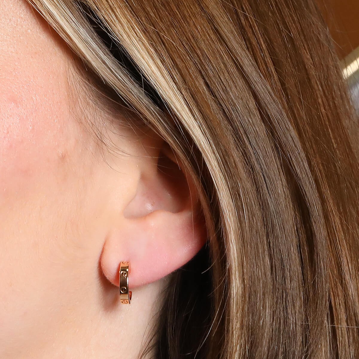 Boucles d'oreilles créoles en or rose, à décor de vis. Signées et numérotées.